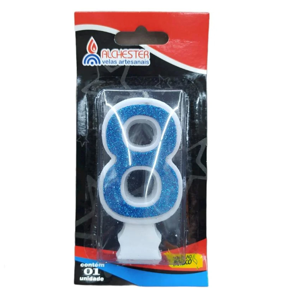 Vela Glitter Azul Número 8 - Alchester