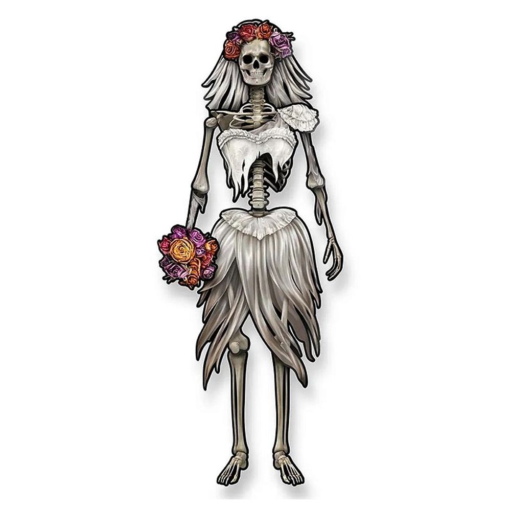 Crie uma atmosfera sombria e divertida com a Decoração Halloween de Pendurar Esqueleto Noiva Regina, ideal para festas temáticas.