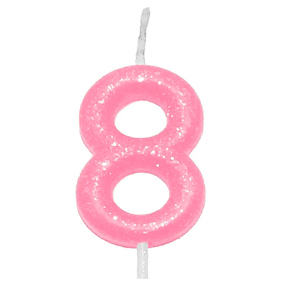 Vela Candy Rosa Número 8 - Silver Plastic